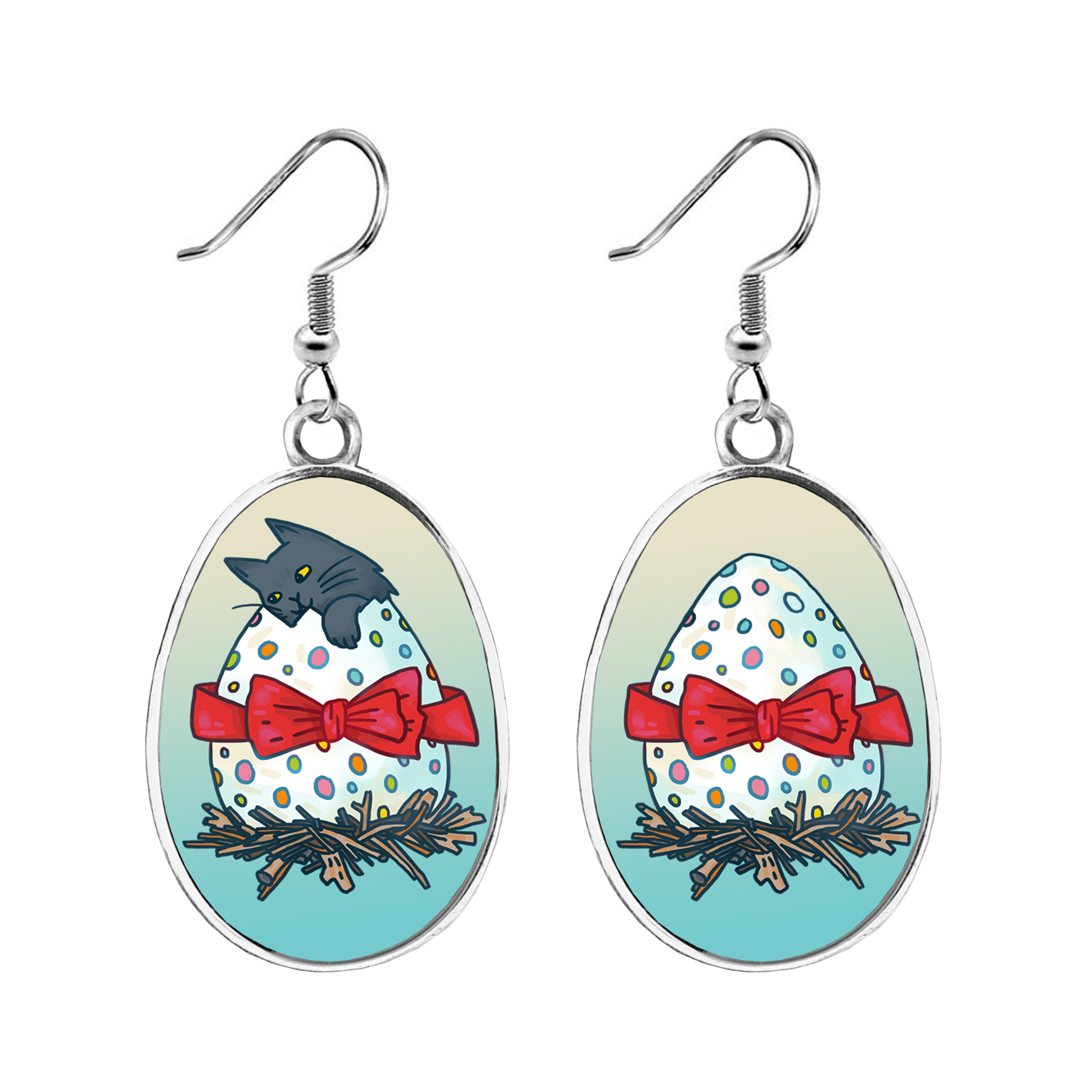 Авторские серьги с иллюстрацией Яны Франк. Двусторонние: на каждой серьге на одной стороне - котик, вид спереди, а на другой - котик, вид сзади.